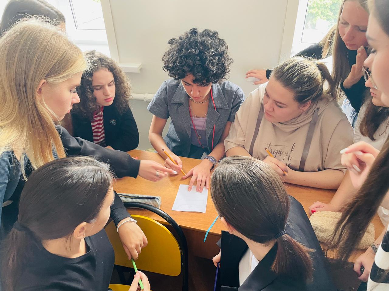 В рамках проведения «Недели погружения в профессию-2023» на факультете ППиСН преподаватели кафедры «Педагогика и психология» провели ряд мероприятий с первокурсниками. 5 сентября доцент Л.В.Лазарева вместе со студентами 3 курса гр.21НЛ1 Бахтигозиной А. и Леоновой А. организовали для первокурсников гр.23НЛ1 занятие с использованием деловых игр «Фигуры» и «Слухи» на развитие способности организованно выполнять сложную работу, требующую хорошего взаимопонимания и четкой координации действий между членами нового коллектива.