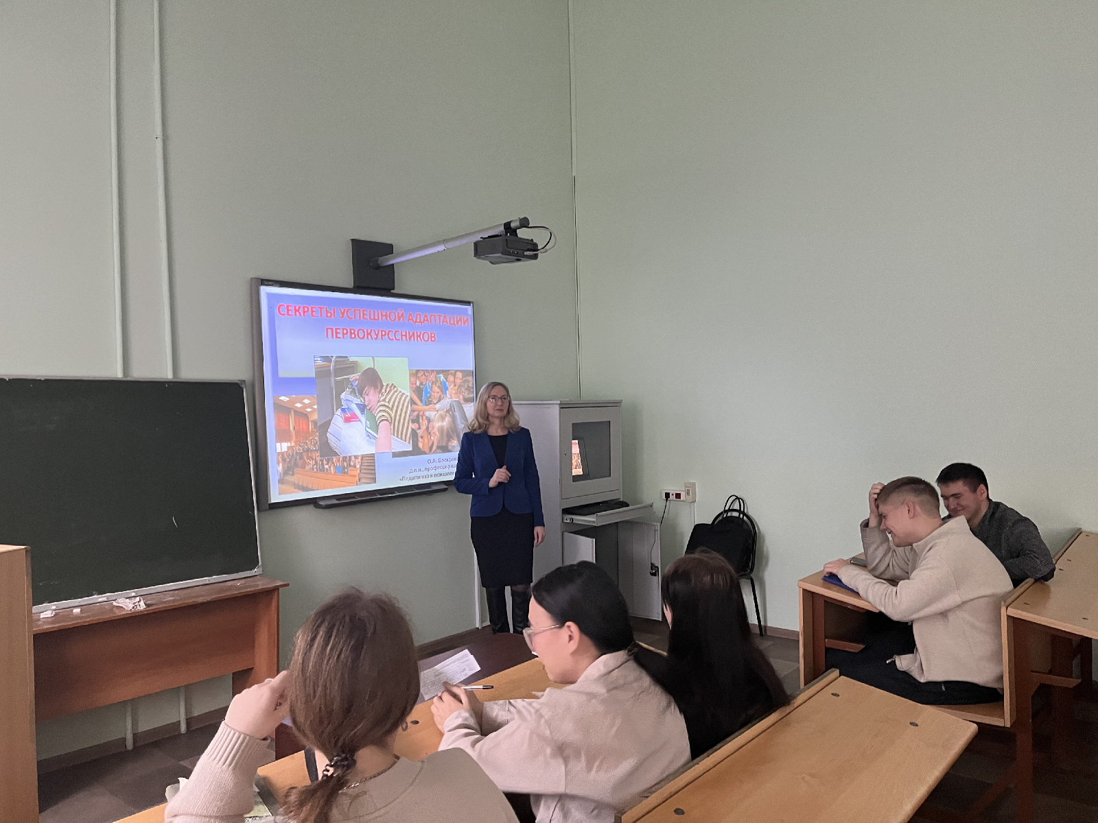 13 ноября д.п.н., профессор кафедры О.А. Воскрекасенко провела кураторский час со студентами группы 23ИПО1 на тему: "Секреты успешной адаптации первокурсников". На основе данных проведённой ранее психодиагностики обучающиеся познакомились со стратегиями адаптации к новой социальной среде и рекомендациями по оптимизации адаптационных процессов.