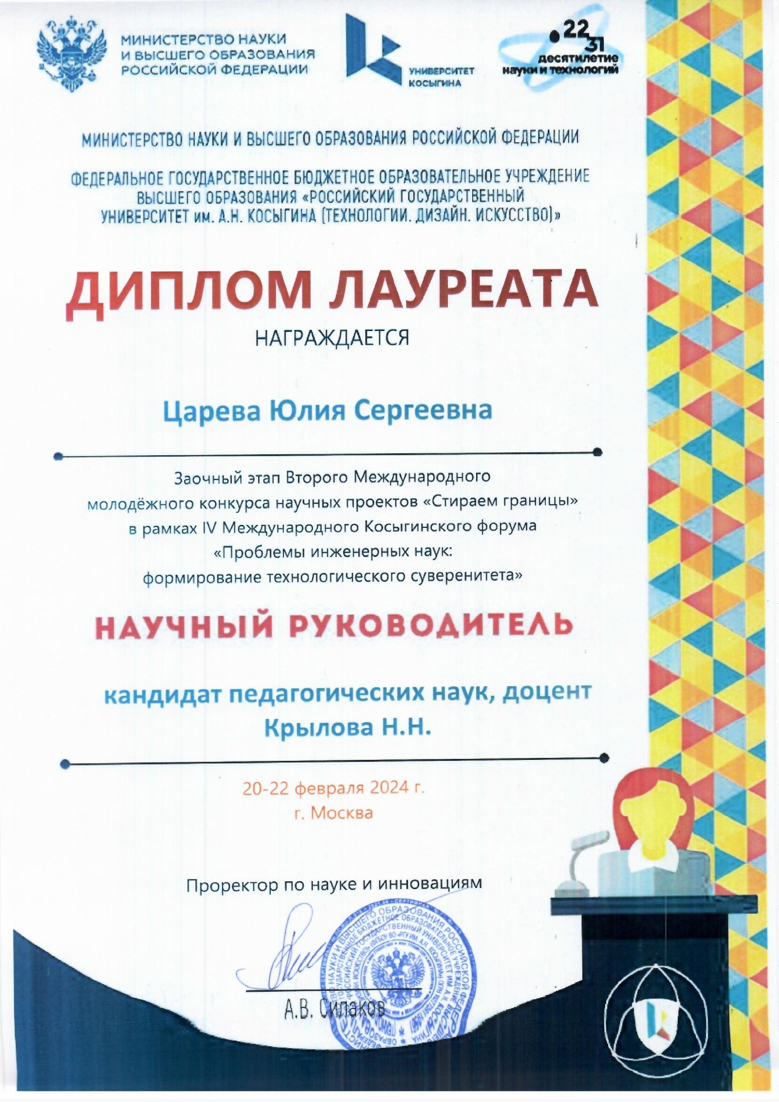 Подведены итоги Второго Международного молодёжного конкурса научных проектов «Стираем границы» (Москва, 20-22 февраля 2024 г.) на котором была представлена научная работа по направлению «ГУМАНИТАРНЫЕ И СОЦИАЛЬНЫЕ НАУКИ» магистра кафедры «Педагогика и психология» Царевой Юлии Сергеевны « Совместная деятельность в инклюзии как условие взаимодействия в системе «взрослый-ребенок»» Научный руководитель – Крылова Н.Н. (к.п.н., доцент кафедры «Педагогика и психология»)