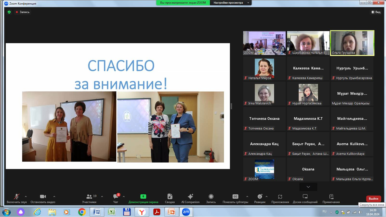18 апреля 2024 года доценты кафедры «Педагогика и психология» Пензенского государственного университета Груздова О.Г. и Щербакова Н.Е. приняли активное участие в Международной научно-практической конференции «Ранняя профилизация как основа профессионального самоопределения и развития личности» (г. Кокшетау, Казахстан).