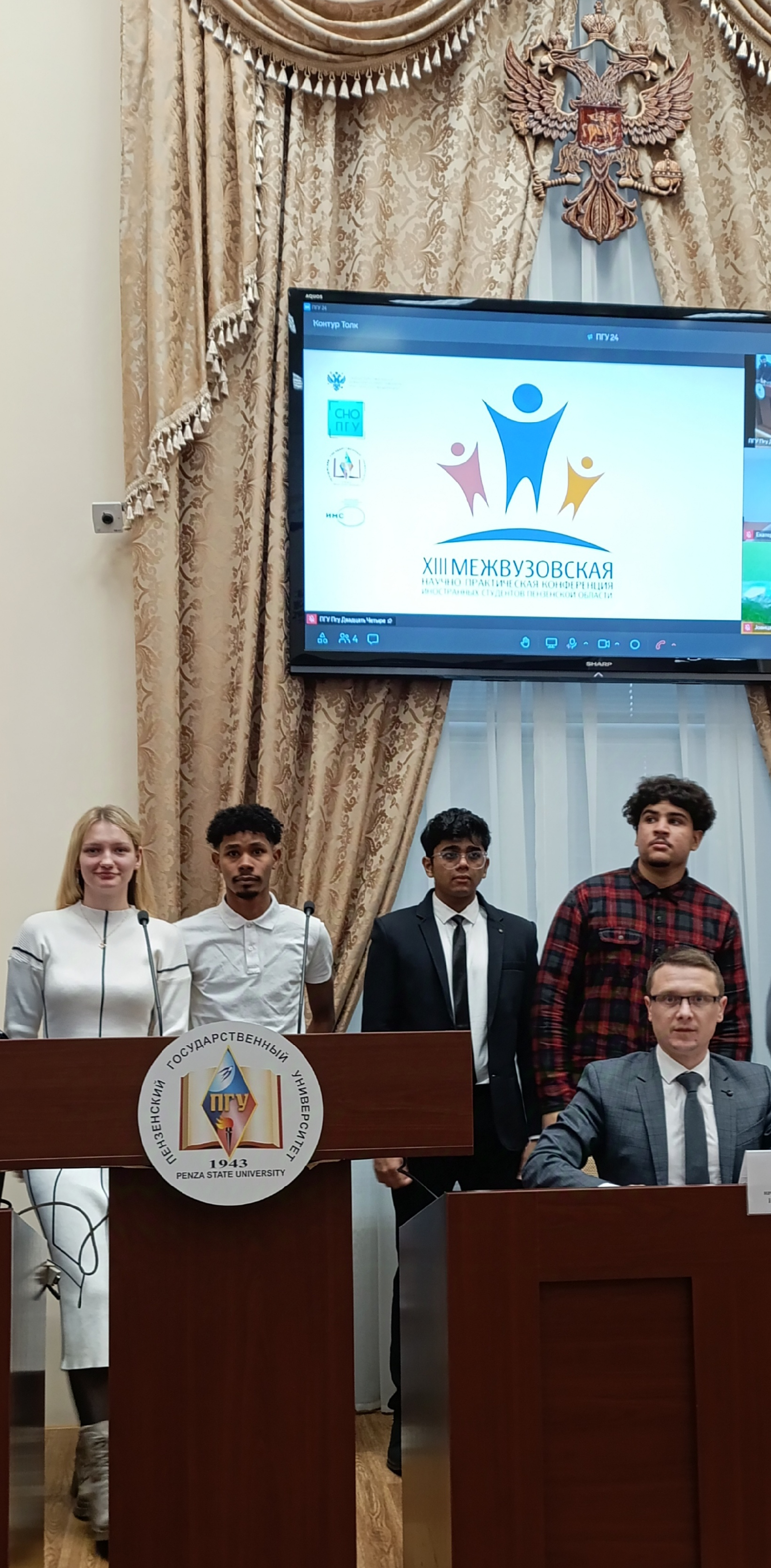 4 декабря 2024 года в ПГУ прошла XIII НПК иностранных студентов. На открытии конференции право выступить с результатми своего исследования получили студенты факультета Педагогики, психологии и социальных дисциплин Леонова Антонина (21НЛ1, Россия), Моайед Мослих (24Нпа1, Судан), а также студенты Медицинского института Руаиниа Айхам(24Лла15, Алжир) и Моди Приянш (24Лла3, Индия). Молодёжный нтернациональный исследовательский коллектив представил тему «Социокультурная адаптация иностранных студентов ПГУ: первые месяцы пребывания в России» и получил дипломы 1 степени.